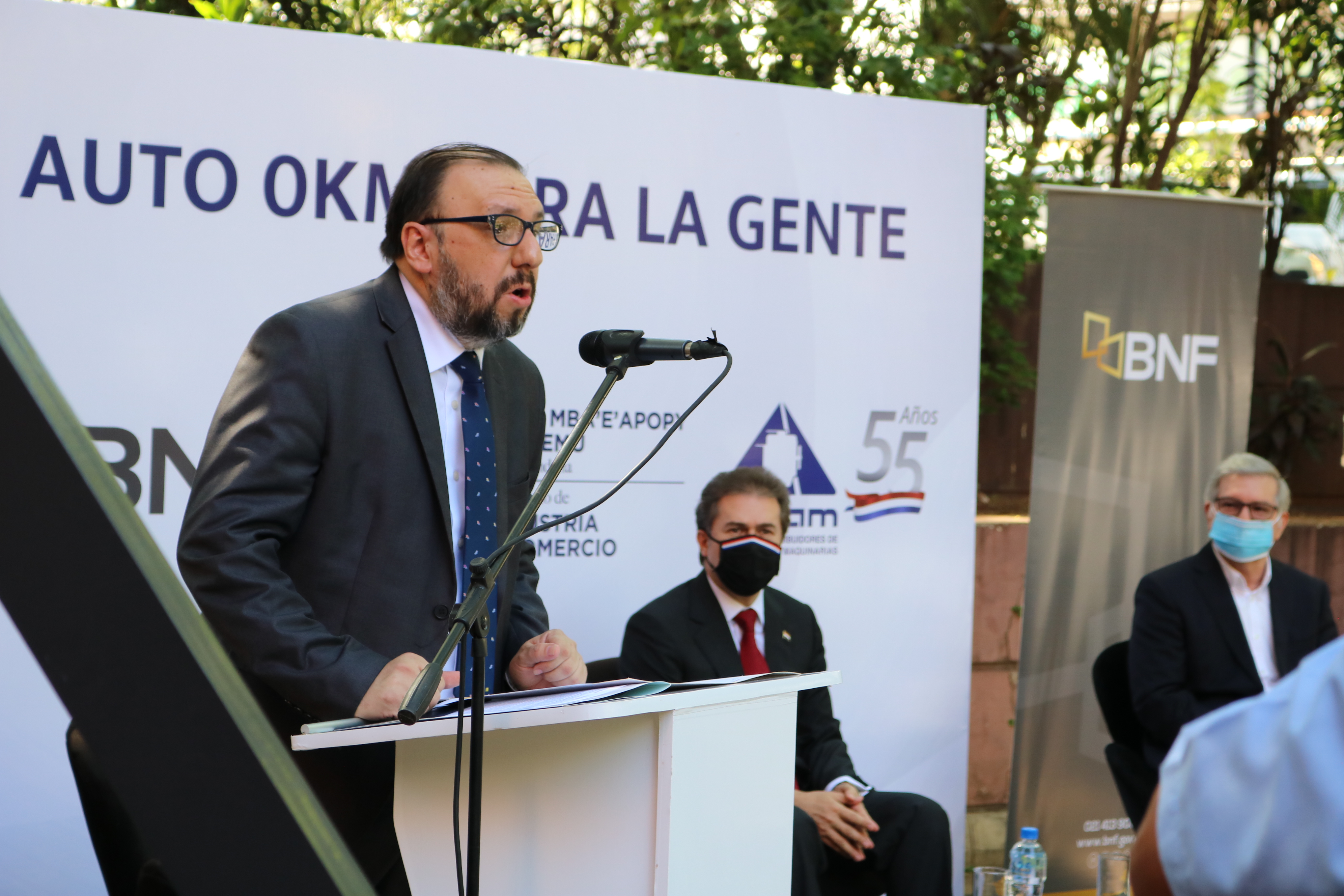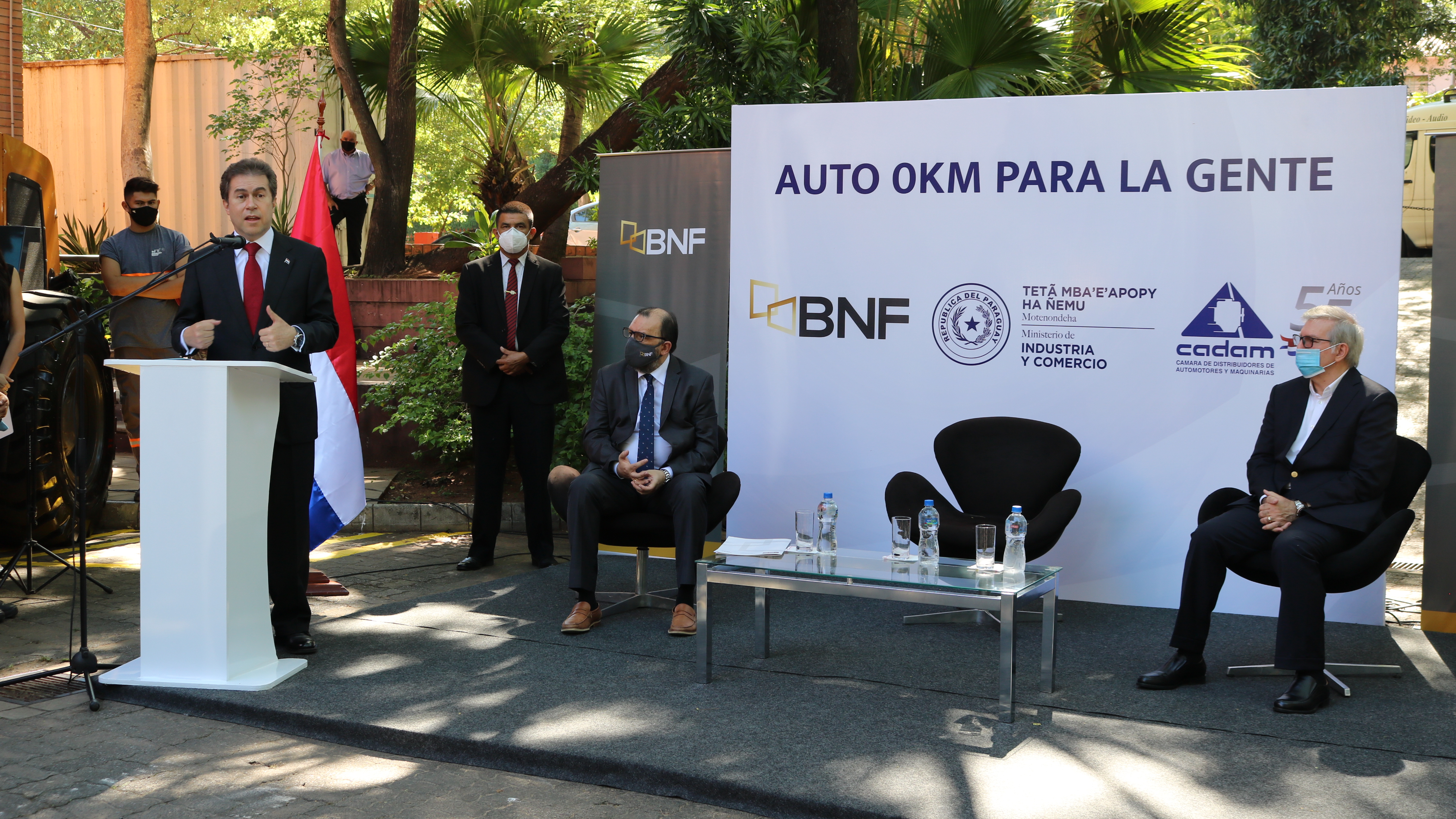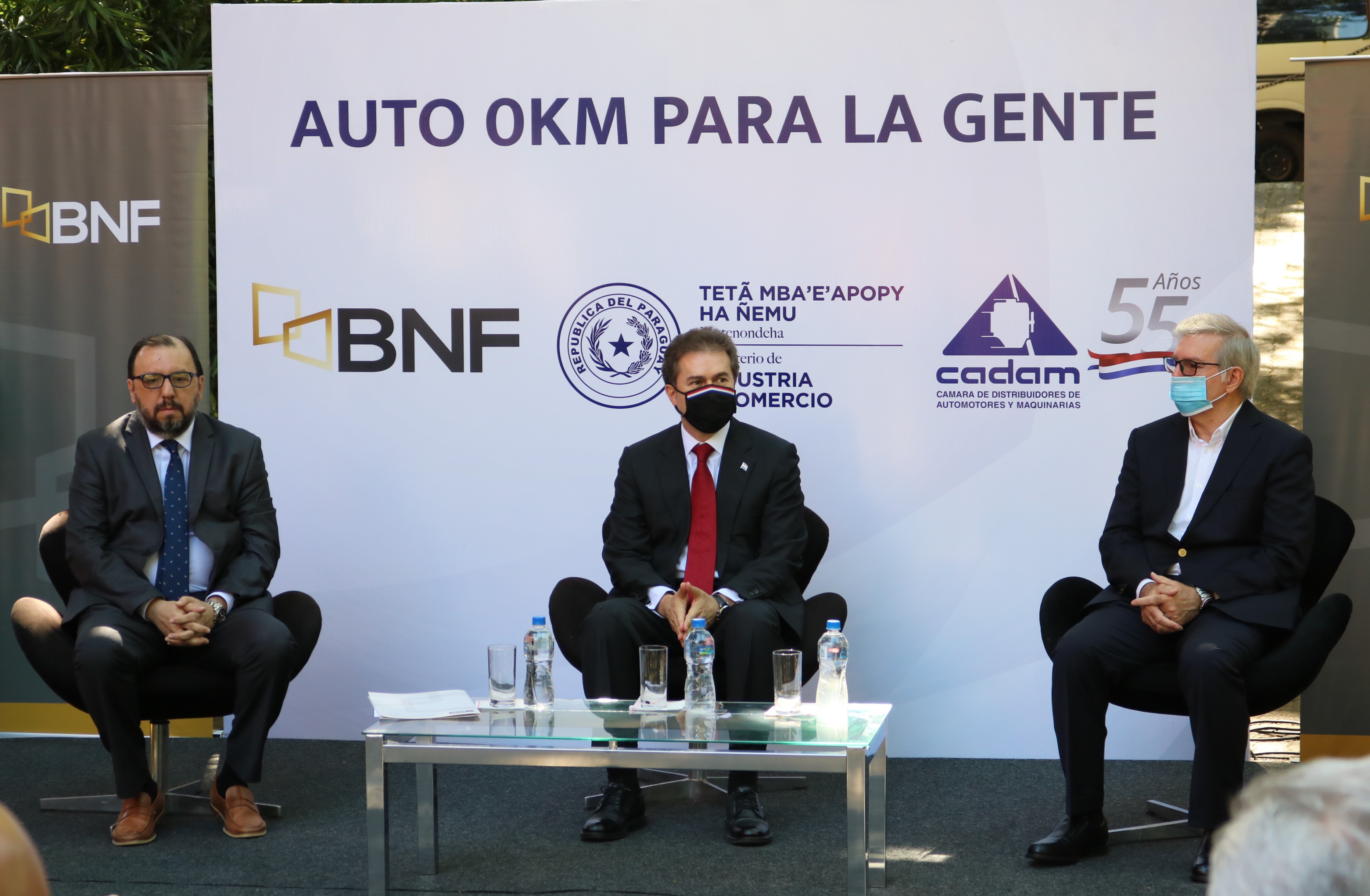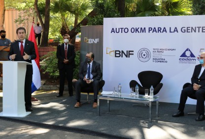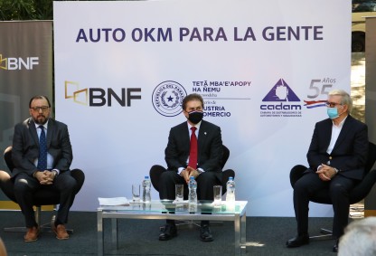 La tercera edición del programa “Vehículo 0km para la gente”, impulsado por el Ministerio de Industria y Comercio (MIC), el Banco Nacional de Fomento (BNF) y la Cámara de Distribuidores de Automotores y Maquinarias (CADAM), fue lanzado en el estacionamiento del MIC, con la presencia del Ministro Luis Alberto Castiglioni; el Presidente de la entidad bancaria, Carlos Florentín; el Presidente de la CADAM, Miguel Carrizosa, e invitados. También, en la oportunidad fueron presentados los créditos preferenciales para maquinarias.