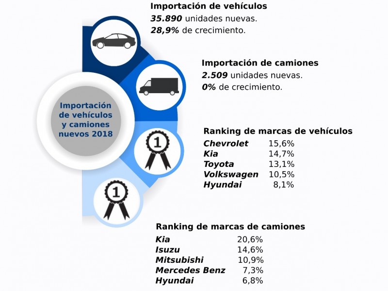 La importación de vehículos y camiones nuevos cerró el año con 26,5% de aumento, según el Departamen...